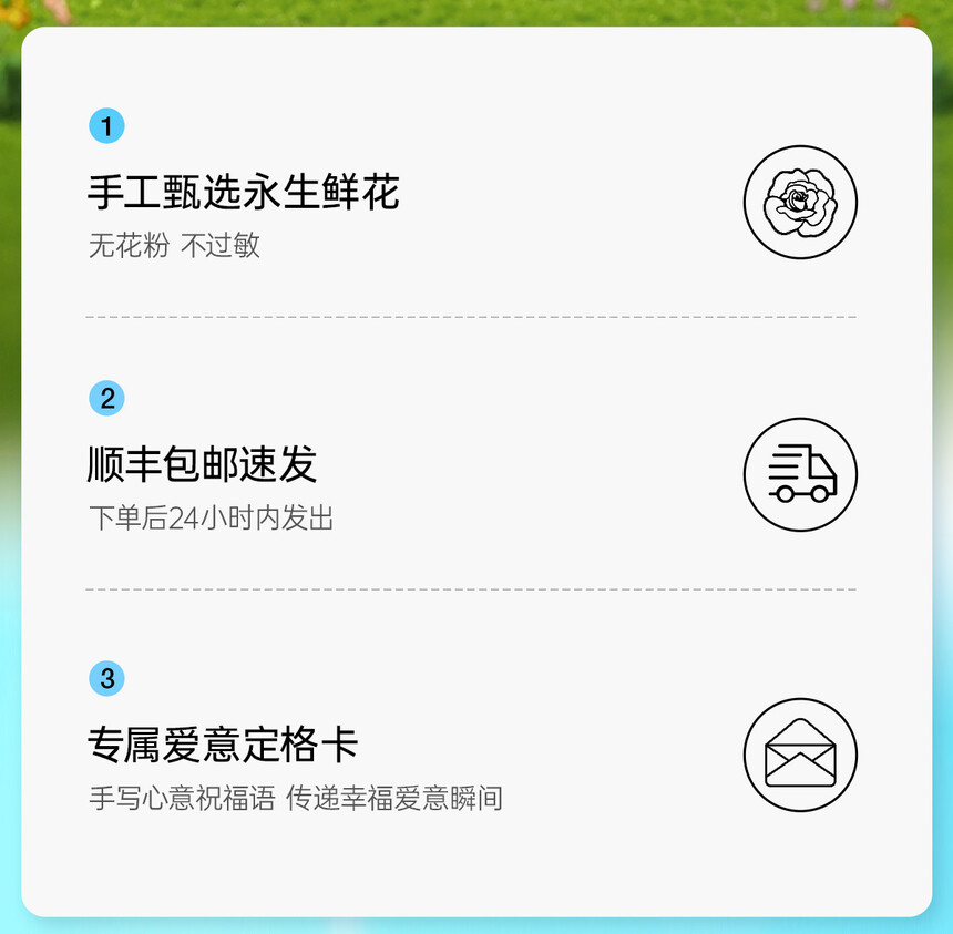 愿您如呵护"爱"一样,呵护每一朵永生鲜花。