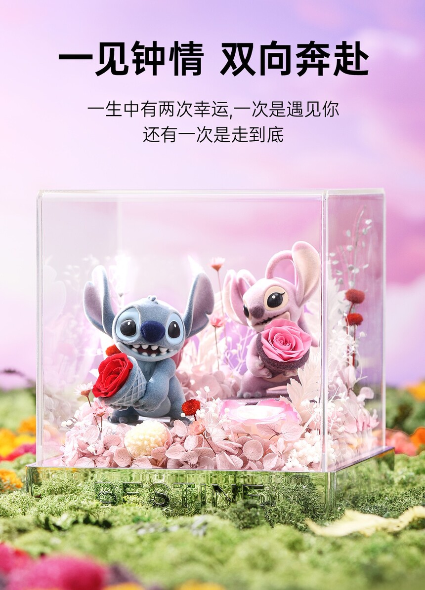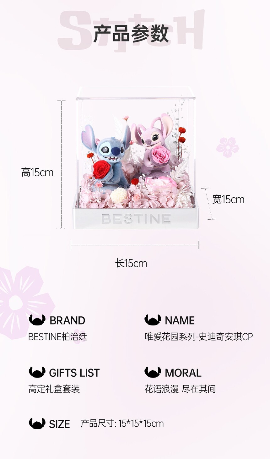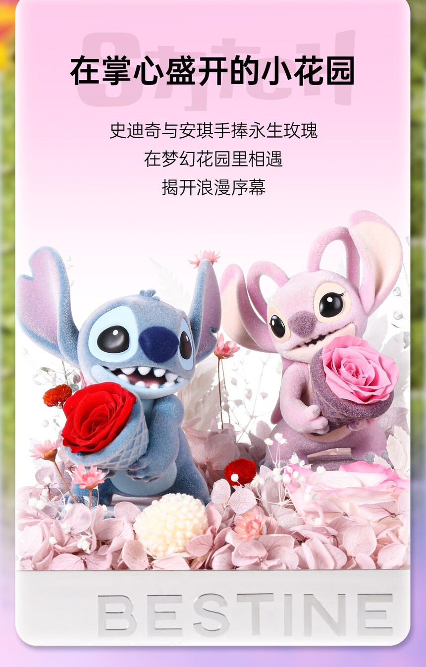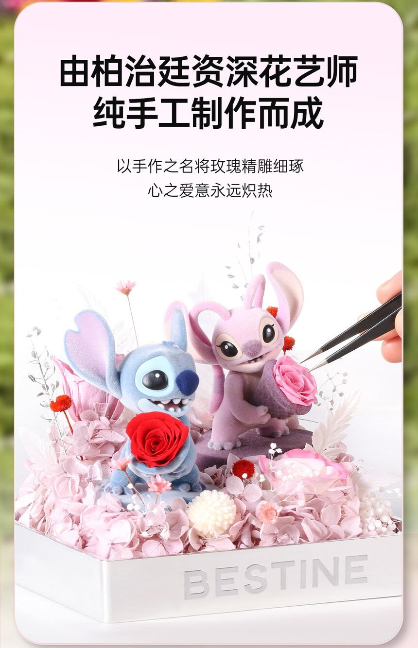 史迪奇安琪永生花粉色花盒-15CM