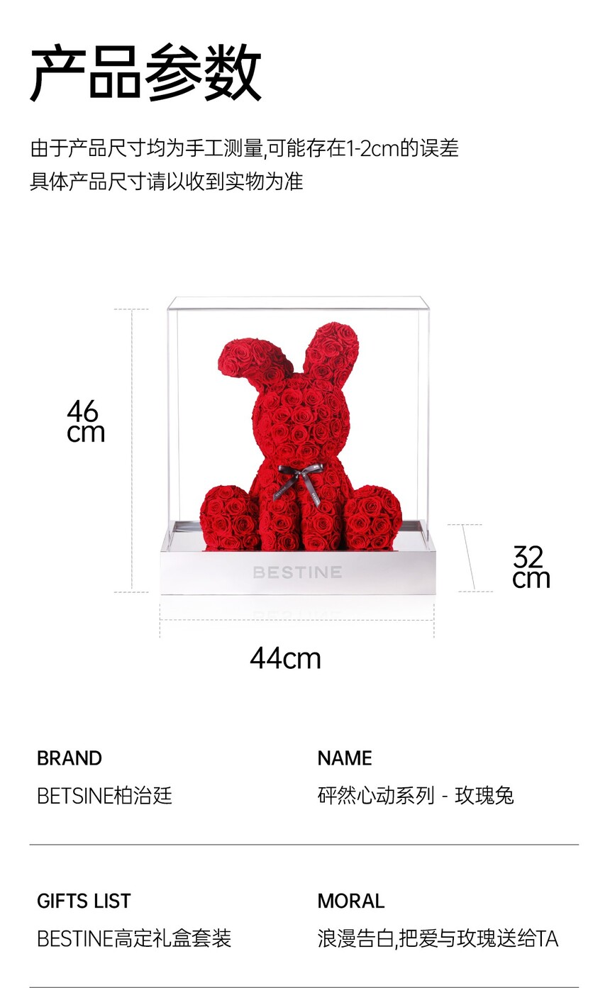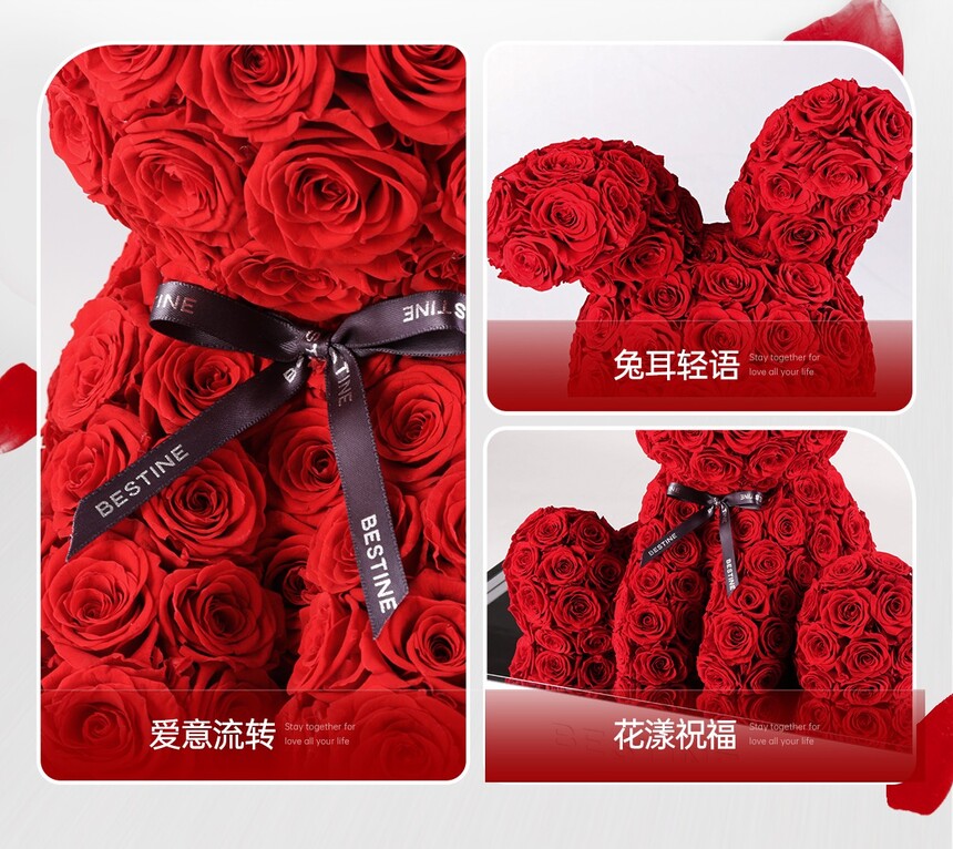 柏治廷永生花玫瑰熊